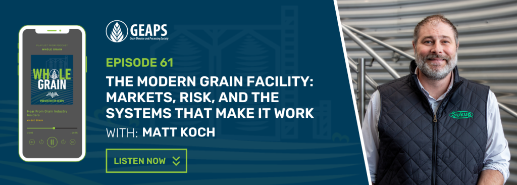 Grain Elevator and Processing Society champions, connects and serves the global grain industry and its members. Be sure to visit GEAPS’ website to learn how you can grow your network, support your personal professional development, and advance your career. Thank you for listening to another episode of GEAPS’ Whole Grain podcast.